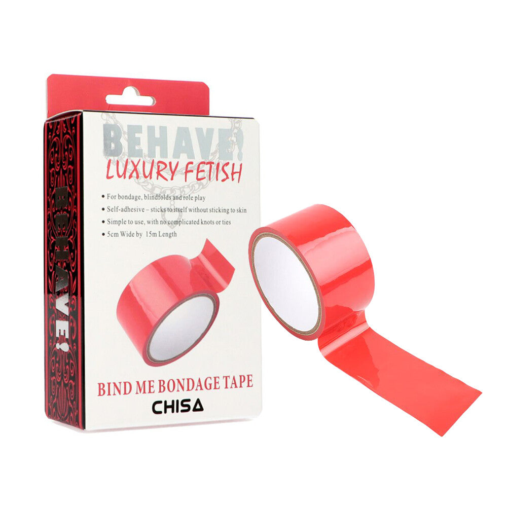 Bind Me Red è una valida ed eccitante alternativa a corde e manette ed è l'ideale per dare il via a scenari erotici alternativi. Sarà finalmente possibile avvolgere il/la partner con lucido scotch: attorno ai polsi o alle caviglie o per tappare la bocca e soffocare grida di piacere. Non appiccica e non strappa via peluria né crea irritazioni dopo la rimozione dalla pelle. Ideato per portare il gioco del bondage ad un livello superiore azzardando immobilizzazioni e dominazione. L'effetto wetlook lo rende attraente e dona un accenno kinky interessante, si addice di certo alle pratiche più estreme. 15 metri di lunghezza.