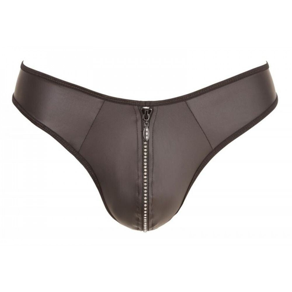 Perizoma in tessuto nero lucido con zip frontale ornato da lucenti strass, che dona un sexy effetto fetish, impreziosito da profili con luccicanti strass, e una comoda e pratica cercniera zip anteriore per essere subito pronti all’azione. Uno slip molto sexy e rock, in fascinoso tessuto traslucido, elegante e dall’impatto fetish, per l’uomo che non deve chiedere mai.