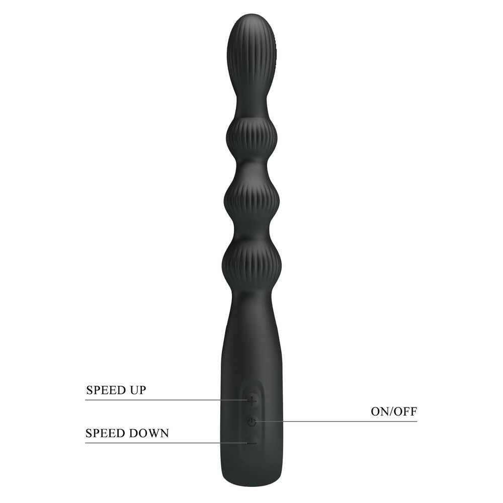 Il vibratore anale Federer è un toy ricaricabile via USB con 12 modalità di vibrazione, progettato per stimolazioni anali progressive grazie al design ondulato. Realizzato in silicone medicale, è lungo 222 mm con una parte inseribile di 130 mm. Il diametro varia da 23 mm a 28 mm, mentre l’impugnatura ad anello da 45 mm garantisce una presa salda. Completamente impermeabile, è facile da usare e pulire.
